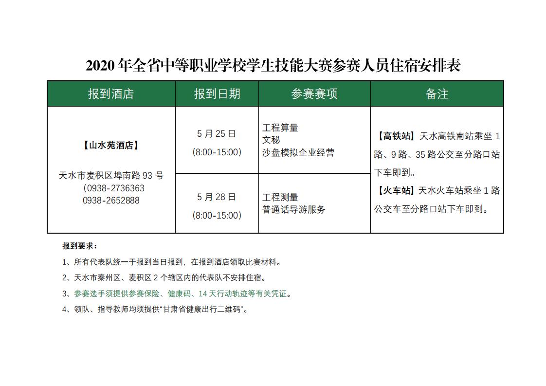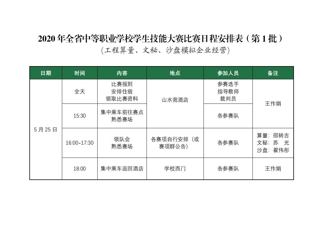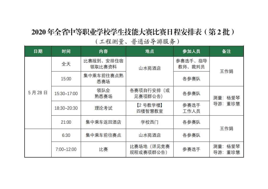 【2020年全省中职学生技能大赛工职院赛点】报到及赛程安排
