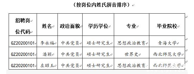 根据事业单位公开招聘工作有关规定,现将我校2020年公开招聘人员考试拟聘用人员予以公示。公示期间,如有异议,请于公示期内向学校纪委(监察室)或组织人事部反映。 公示时间:2020年12月9日-2020年12月15日。 纪委(监察室):13993860080 组织人事部:13993818083 甘肃工业职业技术学院组织人事部 2020年12月9日