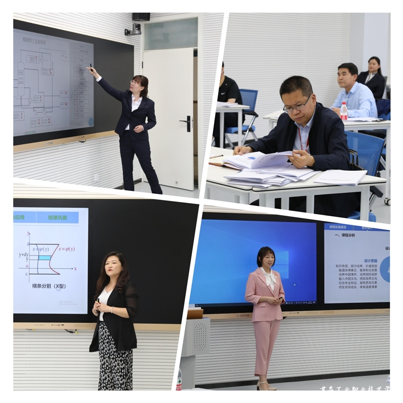 本次比赛严要求、高标准,全程对标省赛、国赛流程标准,比赛设置公共基础课程组和专业一组,专业二组两个大组,共计有来自各教学部门的11支队伍参赛。现场比赛主要包括介绍展示教学实施报告、无学生教学演示及评委答辩三个环节。各参赛队充分运用现代化教学手段,配合默契、沉着冷静、风采各异,比赛氛围紧张有序。