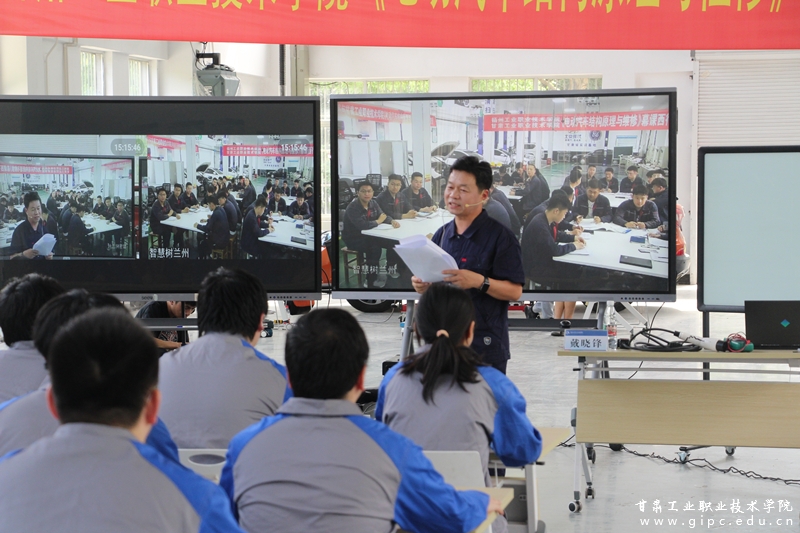 仪式结束,扬州工业职业技术学院交通工程学院院长戴晓锋的《电动汽车结构原理与检修》同步课堂正式开讲。戴晓锋结合案例讲授了新能源汽车慢充系统的结构原理与故障检修相关知识,课程内容生动丰富,充分激发了两校学生的兴趣。因疫情防控原因无法实地走进教室的同学们也能通过同步课堂平台线上观看直播并参与互动,线上“云”互动精彩纷呈,同步上课、同堂提问、同堂讨论得以实现。课堂上,两校学生学在其中,乐在其中,积极互动,反响热烈,课堂气氛融洽。