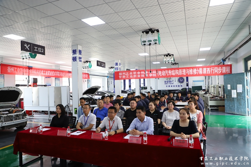 课前,首先举行了扬州工业职业技术学院和甘肃工业职业技术学院联合开展《电动汽车结构原理与检修》“慕课西行——同步课堂”项目启动仪式,启动仪式由扬州工业职业技术学院交通工程学院副院长杨秀芳主持。扬州工业职业技术学院副校长傅伟、甘肃工业职业技术学院副院长王利军出席启动仪式,扬州工业职业技术学院教务处处长张宏彬、交通工程学院院长戴晓锋、交通工程学院党总支副书记张云、交通工程学院副院长仇义,智慧树甘青宁区域总经理董信鸽、甘肃省客户经理李海燕、江苏省客户经理马龙博,我校电信学院院长张燎、教务处负责人薛亚宏及汽车专业全体教师参加了启动仪式。