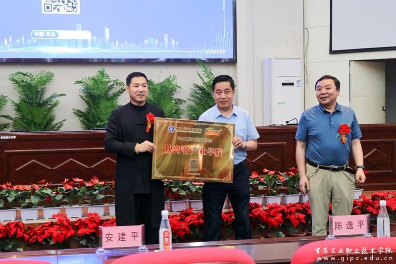 7月6日上午,我校与深圳快印客投资管理有限责任公司联合开办的快印客产业学院揭牌仪式在智敏学术报告厅隆重举行。甘肃工业职业技术学院党委副书记、院长安建平,深圳快印客投资管理有限责任公司董事长王继春,甘肃林业职业技术学院院长陈逸平,甘肃机电职业技术学院院长赵彦军,天水师范学院对外合作交流处处长雒曲波、美术学院院长刘晓毅,甘肃天创广告有限公司总经理陈秉良,天水码上印文化传播有限公司总经理程华等出席揭牌仪式。来自陕西、浙江、重庆、四川、贵州、青海、河南、河北、云南、山东、新疆、内蒙古、甘肃等地70余家知名企业负责人及校企双方师生、职工代表参加了揭牌仪式。仪式由党委副书记郭建忠主持。