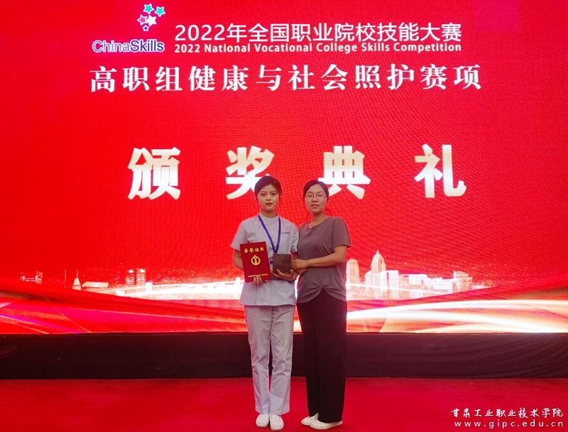 本次大赛中,我校旅游学院专任教师赵文秀担任领队,刘露露担任指导教师,智慧健康养老服务与管理专业2032班甄茜代表甘肃省参加了本次比赛。经过两天的激烈角逐,甄茜最终获得了国赛二等奖的优异成绩,这是继2019年养老服务赛项荣获国赛二等奖后的又一次突破。