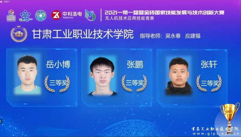 金砖国家技能发展与技术创新大赛(以下简称“金砖大赛”)是2017年金砖国家最高领导人会晤筹备委员会认可、经中华人民共和国外交部备案、金砖国家工商理事会批准的国际大赛。延期开赛的2021一带一路暨金砖国家技能发展与技术创新大赛无人机技术应用技能竞赛赛项于2022年7月12日开赛,9月20日闭幕。我校无人机专业学生岳小博、张鹏、张轩组成的代表队经过持续13天的竞赛,先后完成3轮、4个模块的工作任务,最终获得中国赛区三等奖。