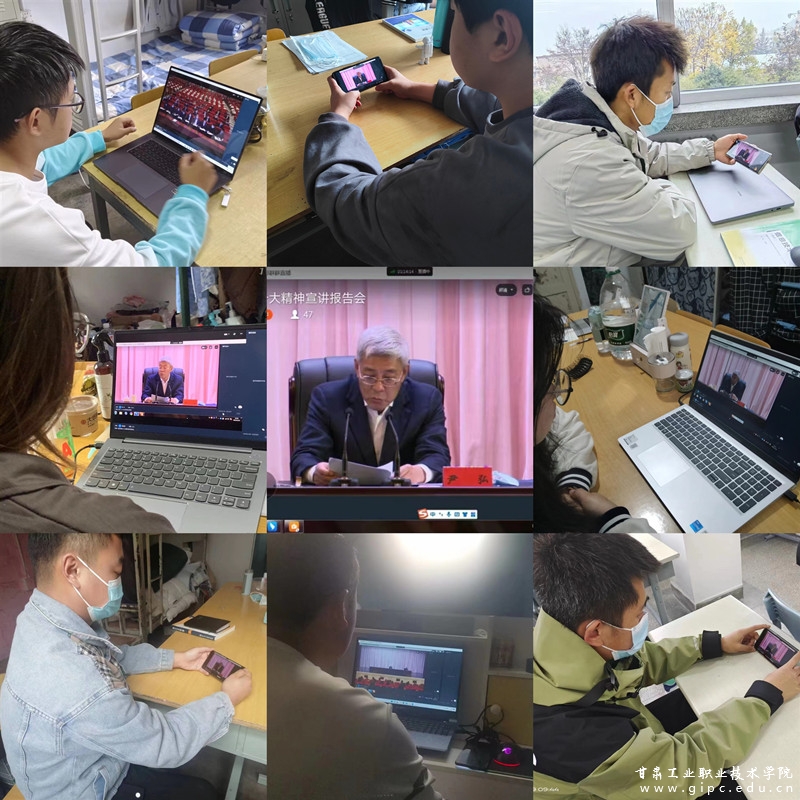 11月9日上午,在甘肃省委、省教育厅的安排部署下,党的二十大代表、省委宣讲团团长、省委书记尹弘在甘肃中医药大学为全省高校系统宣讲党的二十大精神。甘肃工业职业技术学院设立分会场,党委领导班子、中层干部、思政课教师及学生代表共118人通过钉钉收看直播。