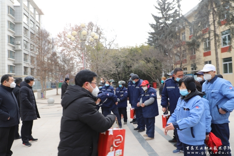 校领导一行感谢大家过去一年的辛苦付出,对寒假期间坚守岗位的工作人员不惧严寒坚守岗位、加班加点辛勤付出表示衷心感谢,希望大家再接再厉,尽心尽力、用心用情做好寒假尤其是春节期间的服务保障工作,为师生提供更加优质、更加暖心的服务,努力让在校师生员工度过一个平安健康、欢乐祥和、温馨暖心的春节假期。