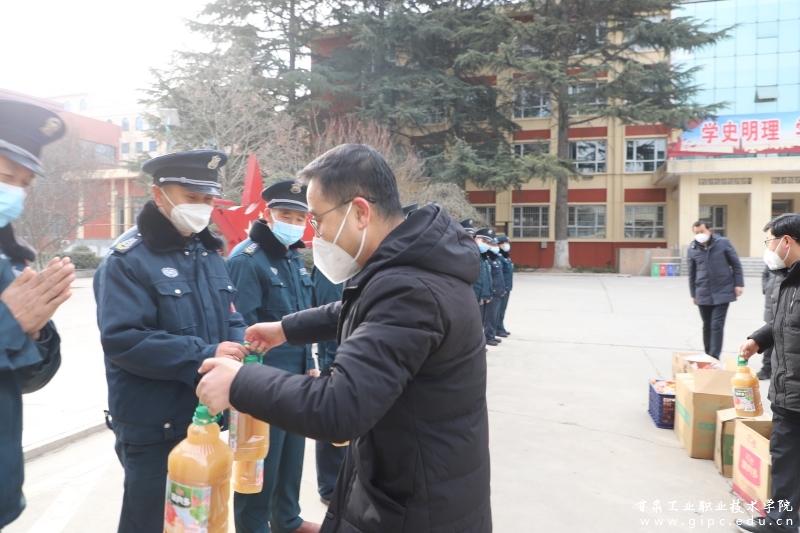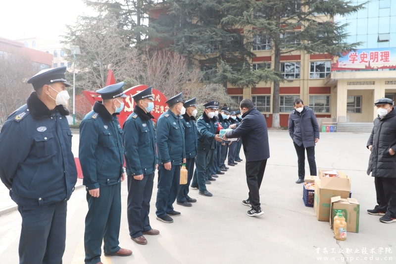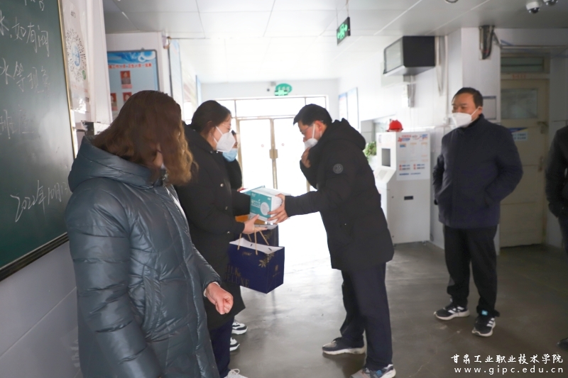 春节将至,冬寒情暖,学校党委心系学校寒假期间工作值守人员。1月17日,党委书记杨声,党委副书记、院长安建平,党委副书记刘乃君,副院长胡森林、曹惠清,在党政办公室主任周晓明、国资后勤处处长万鑫、保卫处处长张仲祥等人的陪同下,慰问了国资后勤处和保卫处寒假期间工作及值守人员,为他们带去了学校的关怀与温暖,并致以新春祝福。
