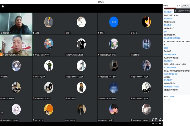 为进一步推进我校2023年度春季征兵工作,激发毕业生报效祖国的激情和献身国防的积极性,我校在前期系列宣传发动的基础上,于2月1日—2日,邀请麦积区武装部利用腾讯会议平台分期分批举办了“2023年春季征兵政策线上宣讲会”。麦积区人武部部长李根来、副部长梅顺安,我校武装部副部长赵卫参会并宣讲,校武装部、二级学院相关负责人和2000余名学生参加。