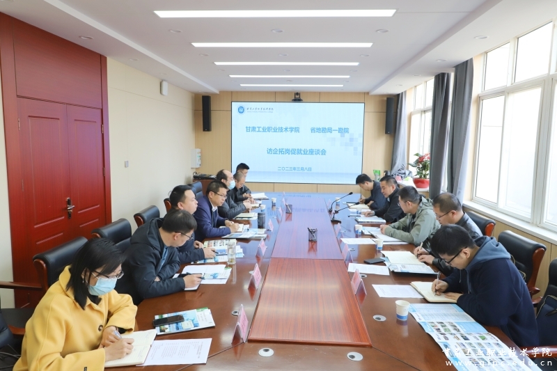 3月8日,甘肃省地矿局一勘院副院长谢琛琦一行来我校交流洽谈。我校在行政楼2楼会议室召开座谈会,副院长王利军出席,化工学院、测绘学院、地质学院及招生就业处人员参加会议。