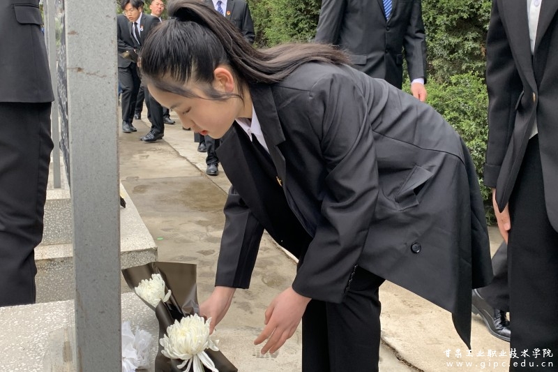 在庄严肃穆的气氛中,全体人员面向革命烈士默哀1分钟,并在烈士墓前重温入团誓词,以誓言之声秉承先烈遗志。宣誓结束,2名国旗护卫队队员代表全校团员青年向革命烈士墓碑敬献花篮,其他在场人员依次向烈士献花并鞠躬致敬。