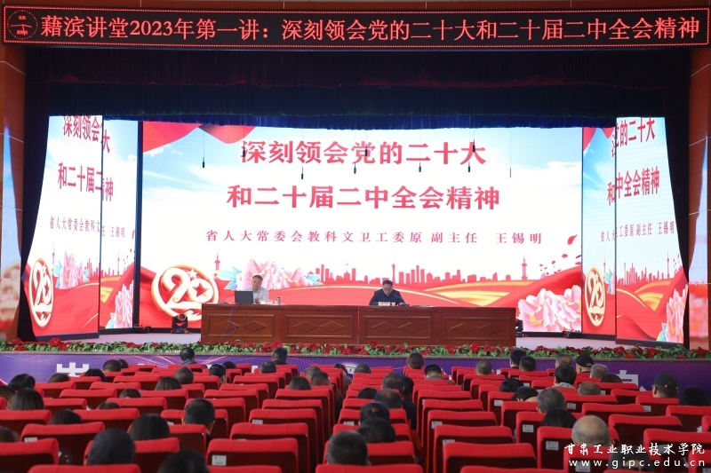 在全省上下全面贯彻落实党的二十大精神、深入开展“三抓三促”行动、冲刺起步奋力推动全省经济社会高质量发展的大好形势下,4月6日下午,我校藉滨讲堂2023年第一讲顺利举行。学校邀请省人大常委会教科文卫工委原副主任王锡明,在大学生活动中心作《深刻领会党的二十大和二十届二中全会精神》专题讲座,学校党委领导班子成员、全体党员、学生代表及花牛镇派出所、地校社区工作人员代表聆听了讲座。讲座由校党委书记杨声主持。