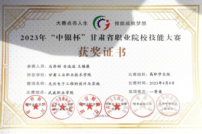 4月7日至4月8日,由甘肃省教育厅、省人力资源和社会保障厅、省财政厅、省卫生健康委员会、省总工会、甘肃中华职教社等6部门联合举办的2023年“中银杯”甘肃省职业院校技能大赛“光伏电子工程的设计与实施”和“光伏电站运维赛项(教师组)”赛项在武威职业学院举行。