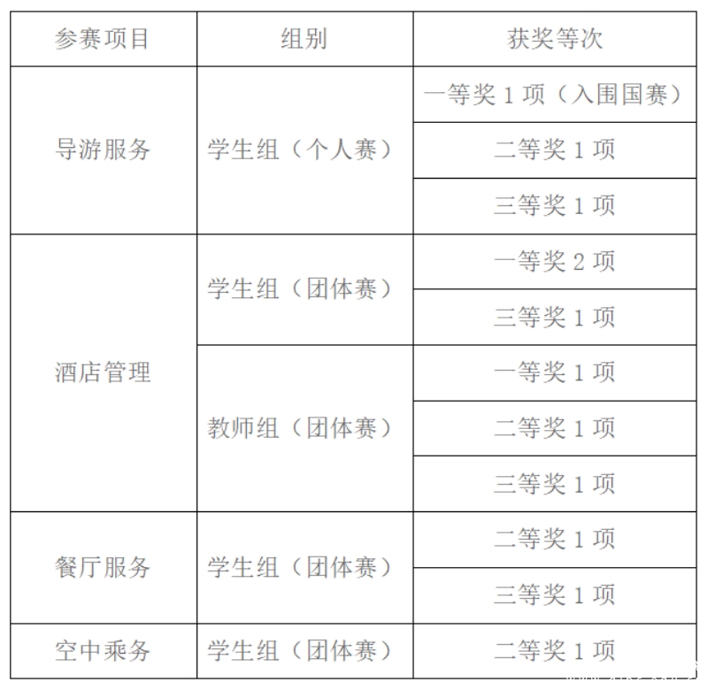 多年来,旅游学院一直秉承“以赛促教、以赛促学、以赛促改、赛教融合”的理念,强化学生的实操能力训练,弘扬劳动光荣、技能宝贵、创造伟大的时代风尚,不断提升学生的综合实践能力和创新能力。下一步,旅游学院将进一步加强各赛项国赛的备赛,力争在今年的国赛中取得突破。
