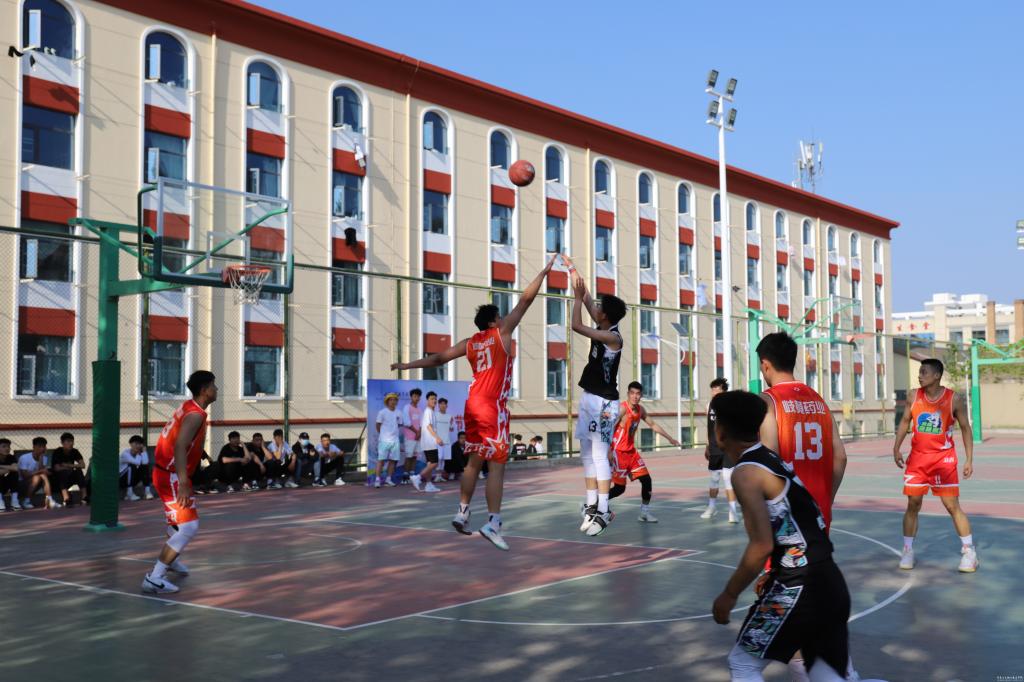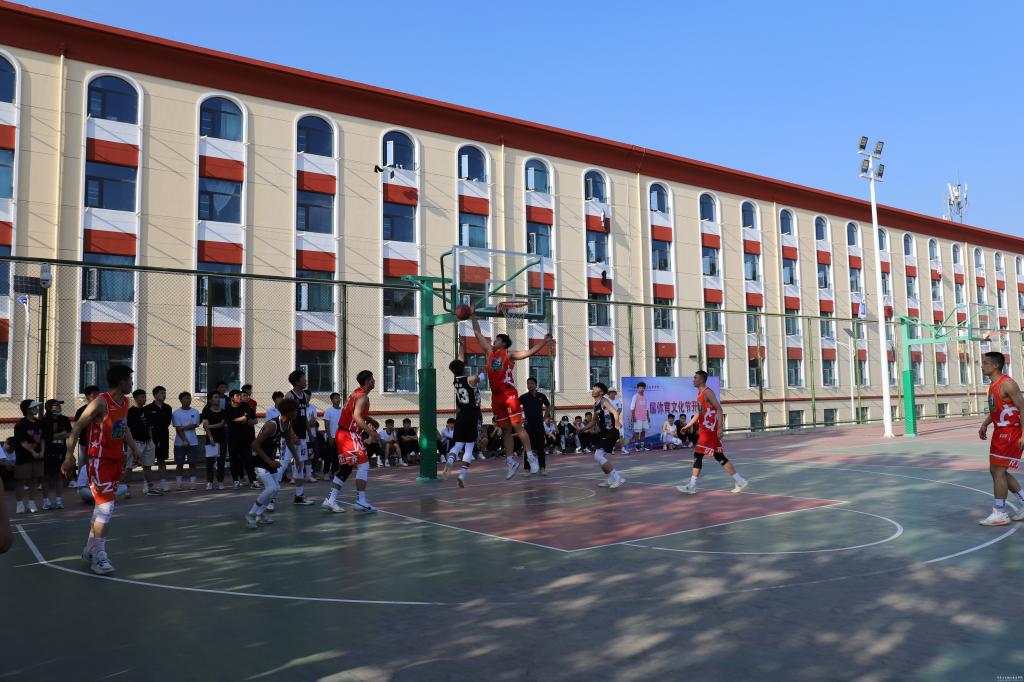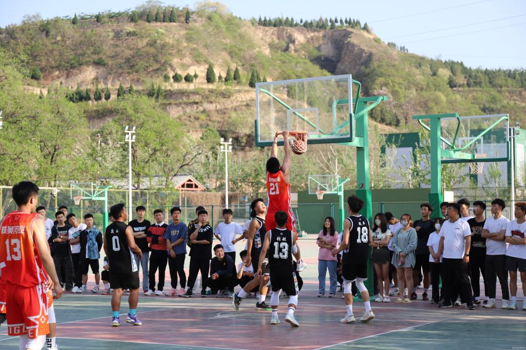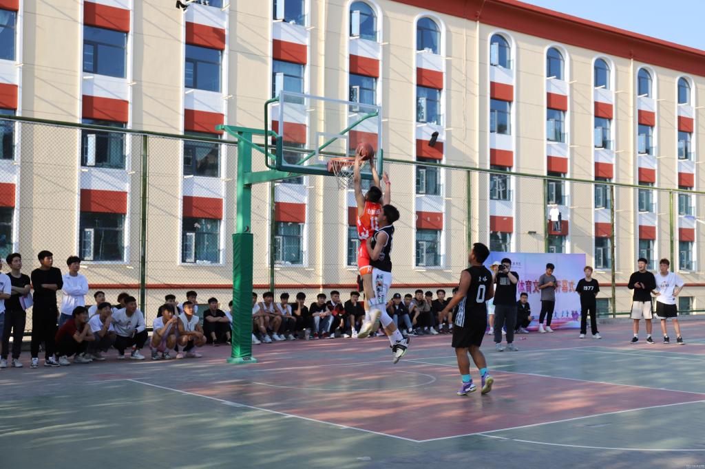 开幕式结束后,与会领导和同学们共同观看了昊峰集团篮球队与我校篮球队的揭幕战。比赛过程中,双方队员奋力拼搏、防守有度,比赛激烈精彩,特别是昊峰集团篮球队精湛的球技赢得了场外观战同学的阵阵喝彩。