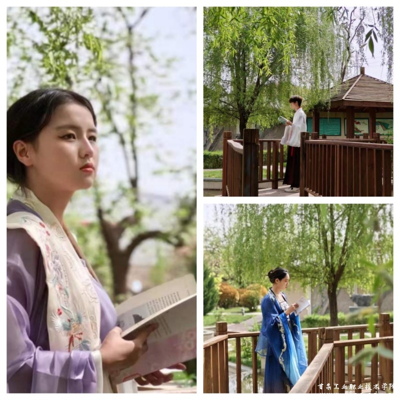 “罗衣何飘飘,轻裾随风还”,学生们身着汉服,漫步在春日的校园中,观赏校园春光,与园中景色遥相呼应,伴着悠扬的诵读声与同学们的欢声笑语,在春日的校园中展现着古典与青春的交融。