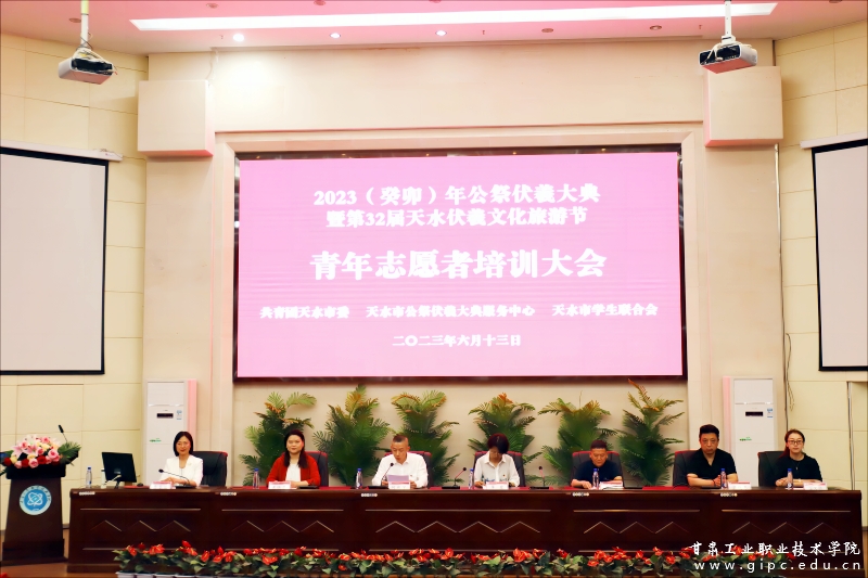 6月13日,2023(癸卯)年公祭中华人文始祖伏羲大典暨第32届天水伏羲文化旅游节青年志愿者培训大会在我校图书馆5楼报告厅举行。团市委副书记蒋露、天水市公祭伏羲大典服务中心副主任刘晋、团市委学少部、天水市公祭伏羲大典服务中心节会科及我校团委负责人等出席培训会,来自各二级学院的180名青年志愿者参加培训并宣誓。培训会由市学联秘书长何新宇主持。