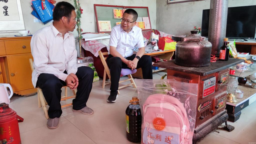 结对帮扶干部曹惠清深入东风村阳坡社结对关爱对象家中,与孤儿、困难重度残疾人及其监护人亲切交谈,了解两个孩子的基本生活、学习等状况和家庭人员收入来源、政策落实等情况,为关爱对象送上了书包、文具、米、油等用品。