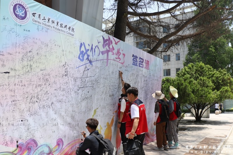 典礼结束后,毕业生们到毕业打卡墙签字并合影留念。