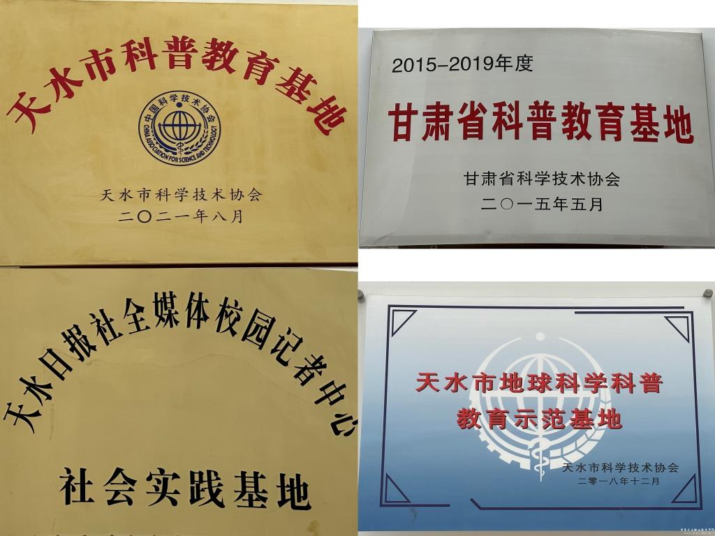 此外,历经多年建设,我校地质博物馆还被授予全省职业启蒙劳动教育培育基地、甘肃省科普教育基地(2015-2019)、天水市科普教育基地(2021-2026)、天水市地球科学科普教育示范基地、全媒体校园记者中心社会实践基地等称号。