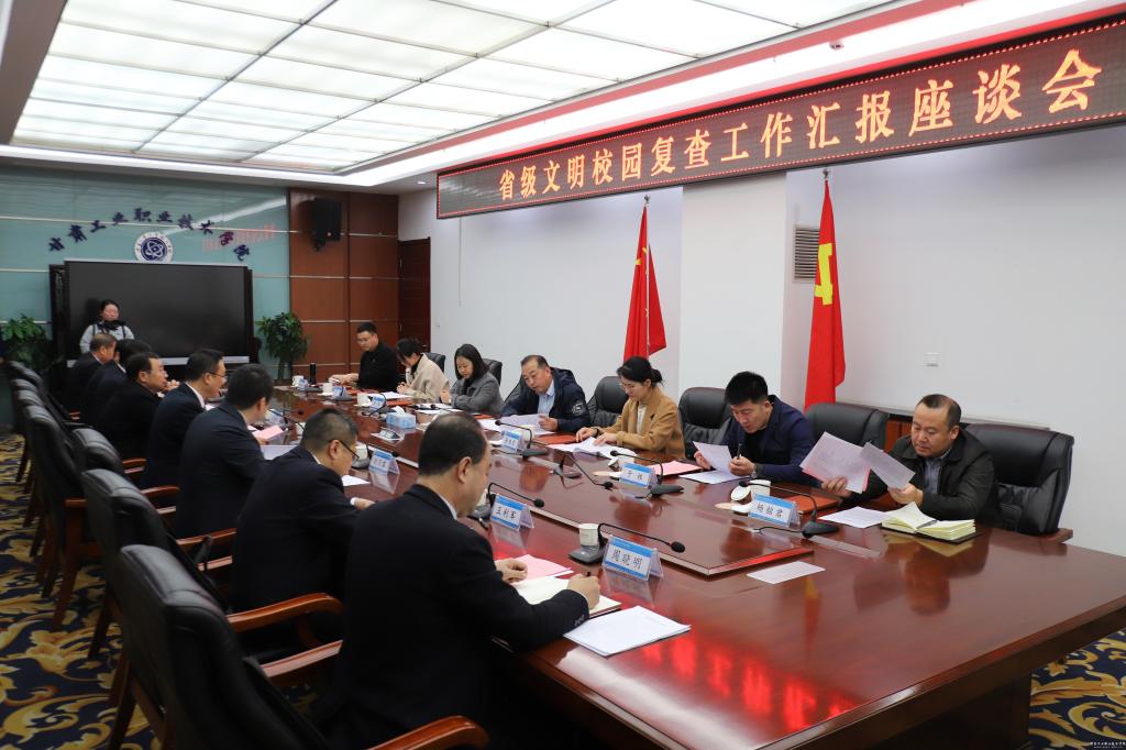 实地查看结束,学校在图书馆4楼会议室召开文明校园复查工作汇报座谈会。