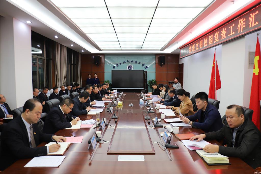 学校相关部门及二级学院负责人参加了复查工作汇报座谈会。