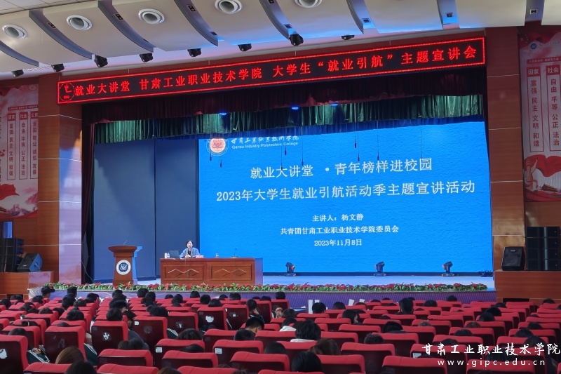 为进一步落实大学生就业引航计划工作要求,提高大学生职业生涯规划能力,真正把“三抓三促”行动取得的成效转化为推动学校高质量发展的强大动力,11月8日,共青团天水市委员会联合我校团委,在我校大学生活动中心开展了“2023年大学生就业引航活动季”主题宣讲活动。