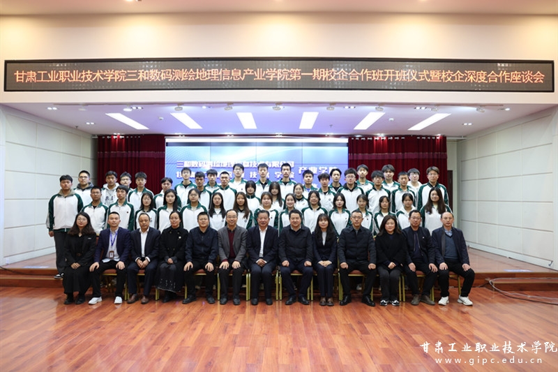 为持续巩固校企深度合作办学成果,推动“三抓三促”行动走深走实,11月10日,甘肃工业职业技术学院三和数码测绘地理信息产业学院第一期校企合作班开班仪式暨校企深度合作座谈会在三和数码有限公司召开。校党委副书记刘乃君出席并致辞,三和数码测绘地理信息技术有限公司党总支书记靳娟丽、副总经理吕志伸及主要部门负责人,我校质量管理处、教务处、测绘学院相关负责人和第一期校企合作班42名同学参加。活动由中国建材地勘中心甘肃总队副总队长、三和数码董事长陈重奎主持。