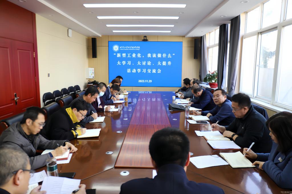 为进一步学深悟透习近平总书记关于推进新型工业化的重要指示、重要论述,深入贯彻全国新型工业化推进大会精神,我校在全校范围内组织开展了大学习、大讨论、大提升活动。11月29日下午,全校教职工围绕“新型工业化,我该做什么?”主题召开了第一次教职工学习讨论会。