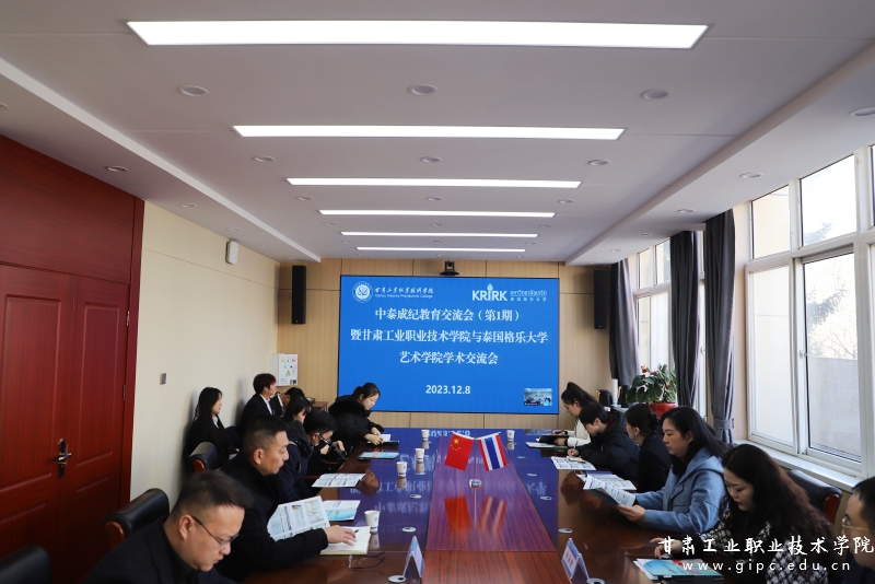 12月8日,学校在行政楼2楼会议室召开了中泰成纪教育交流会(第1期)暨甘肃工业职业技术学院与泰国格乐大学艺术学院学术研讨会。泰国格乐大学校务委员会副主席李黎光,国际学院副院长、艺术系主任林毓芝,国际学院阮山科特·简萨阮瑟纳(Ratthakhet Jantharasena),学生处处长达林·思瑞萨斯特拉(Darin Srisastra)等泰方学校领导,我校副院长王利军出席会议。泰方学校教师代表,我校艺术学院院长张学文及部分教师和学生代表参加会议。