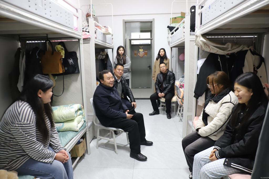 安建平一行深入学生宿舍,与同学们亲切交流,对学生的学习、生活、思想动态等进行全面了解,勉励同学们勤奋学习,做好实习和就业规划。同时叮嘱同学们提高安全意识、注意安全用电、遵守宿舍管理规定,鼓励大家调整好生活学习状态,积极参加各种校园活动,全面提升自己。