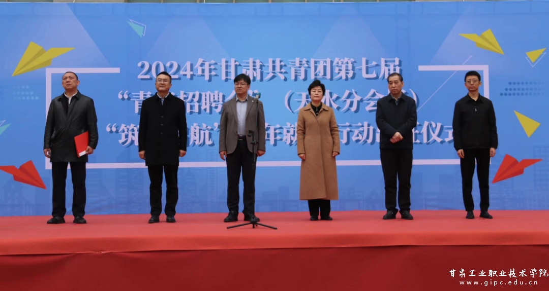 3月16日,由共青团甘肃省委主办,共青团天水市委、甘肃工业职业技术学院承办的2024年甘肃共青团第七届“青春招聘会”(天水分会场)暨“筑梦启航”青年就业行动出征仪式在甘肃工业职业技术学院举行。团省委副书记赵才让、天水市政府副市长汪小娟出席仪式,来自市内外80余家用工企业、500余名求职青年参加此次活动。