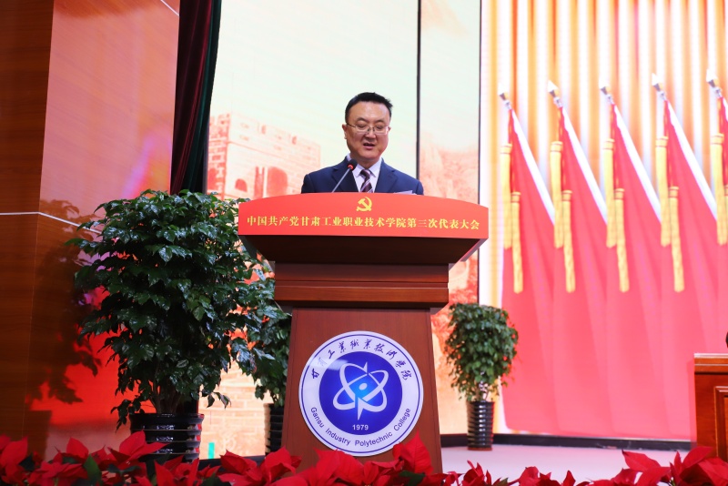 坚葆林同志代表中国共产党甘肃工业职业技术学院第二届委员会向大会作题为《锚定新型工业化 开启筑梦新征程 谱写新时代高水平职业院校建设新篇章》的工作报告。