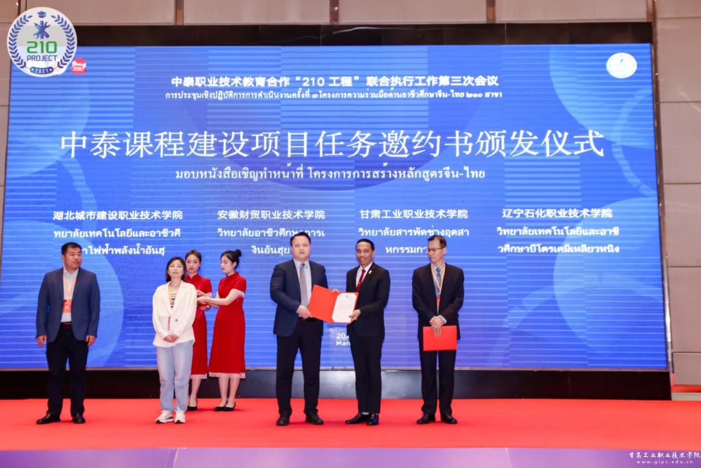 会上,宋鹏·班丹发表致辞,向我校及其他相关院校颁发中泰“210工程”课程建设项目任务邀约书和专业框架建设书,我校应泰国教育部职教委员会委托承接了酒店管理与数字化运营专业两门课程建设任务,并聘请我校部分教师为项目专家。这标志着相关课程建设完成后将纳入泰国职业教育学分体系。