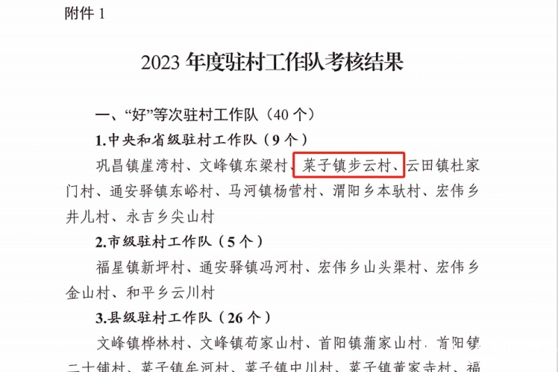 菜子镇步云村帮扶工作队成效: