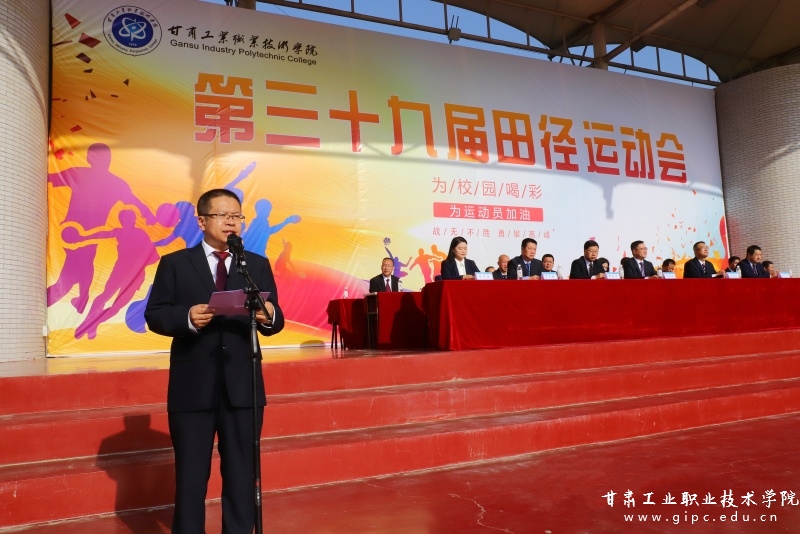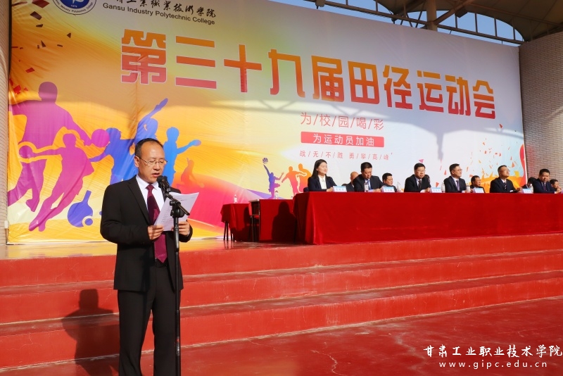 王利军在致词中向辛勤工作的筹备人员和积极参与的运动员们表示衷心感谢。他指出,学校第三十九届田径运动会的举办是贯彻落实习近平总书记关于教育、体育重要论述的生动体现,也是对我校全体师生组织纪律性和精神风貌的一次大检阅。他希望全体运动员发扬“更高、更快、更强”的奥林匹克精神,顽强拼搏,赛出风格、赛出水平,同时以此次春季田径运动会为契机,增强使命担当、携手应对挑战、永葆青春活力,共同谱写甘肃工业职业技术学院跨越发展的崭新篇章!