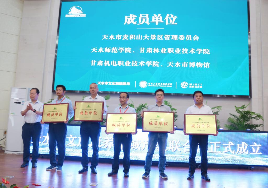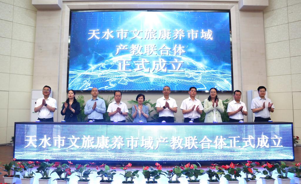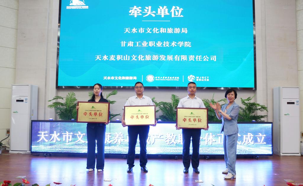 天水市文旅康养市域产教联合体是在甘肃省教育厅、天水市人民政府的指导下,由天水市文化和旅游局、甘肃工业职业技术学院和天水麦积山文化旅游发展有限责任公司三家单位牵头,联合58家优质企业、高等院校、科研机构、行业协会和上下游企业等共同组建。旨在积极探索“政行企校”协同育人机制,将职业教育与行业进步、产业转型、区域发展紧密结合起来,建立健全多形式衔接、多通道成长、可持续发展的梯度职业教育和培训体系,构建职业教育与产业发展同频共振新格局。作为联合体的牵头单位,我校将继续秉承“合作共赢、创新发展”的理念,深入探索文旅康养产业融合发展的新路径,通过加强产学研合作、推动产教融合、加强区域合作与交流等措施,不断提升文旅康养产业的竞争力和影响力,为努力把天水建设成为独具魅力、富有特色、业态多元、功能完备的文旅康养城市赋能。