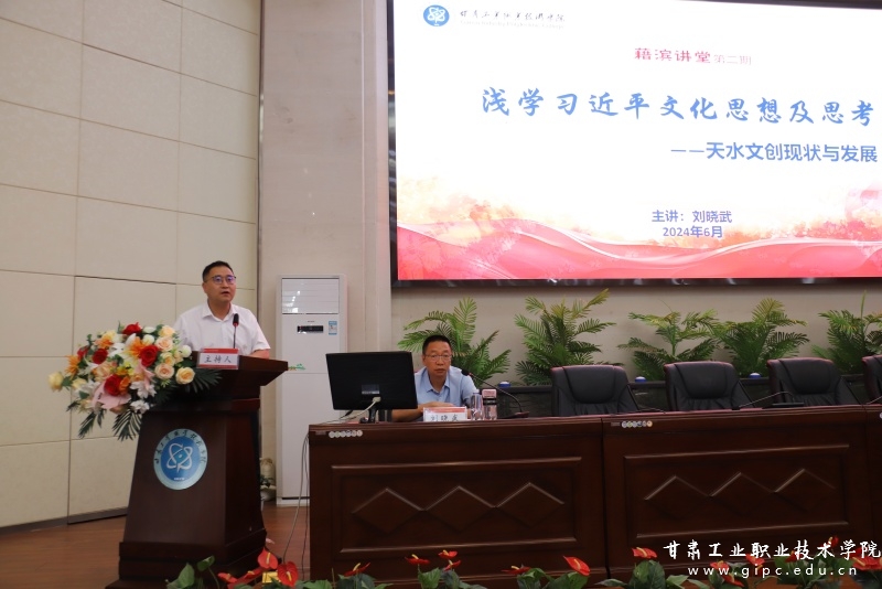 6月27日下午,正值我校成功举行天水市文旅康养市域产教联合体成立大会,天水66号文化创意园董事长刘晓武在图书馆5楼智敏报告厅作专题讲座暨学校2024年藉滨讲堂第二期讲座,2023级学生代表共计300余人参加。报告会由党委委员、副院长胡森林主持。
