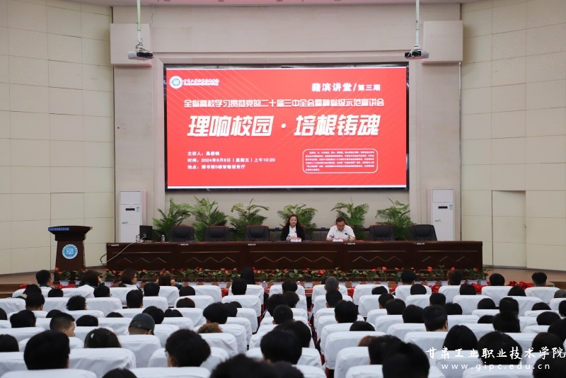 为了全面深入学习宣传贯彻党的二十届三中全会精神,按照省委教育工委统一安排部署,9月6日上午,“理响校园·培根铸魂”全省高校学习贯彻党的二十届三中全会精神省级示范宣讲活动暨学校“藉滨讲堂”第三期在图书馆五楼智敏报告厅举行。省委教育工委宣讲团成员、甘肃农业大学马克思主义学院副院长桑碧桃为我校师生作题为《坚定不移持续深化改革——学习宣传贯彻党的二十届三中全会精神》专题宣讲报告。宣讲会由党委副书记文云主持,党委宣传部、马克思主义学院、团委、二级学院师生代表300余人参加。