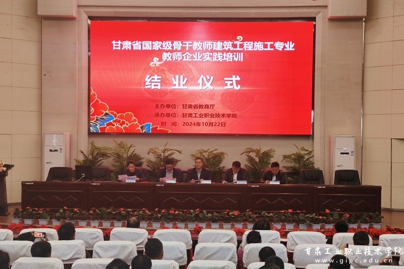 10月22日下午,由甘肃省教育厅主办、甘肃工业职业技术学院承办的2024年甘肃省中等职业学校建筑工程施工专业教师企业实践培训班圆满结束。学校在图书馆智敏报告厅举行结业仪式,副院长胡森林出席,建筑学院、继续教育学院负责人以及来自全省各中职院校相关专业教师参加。