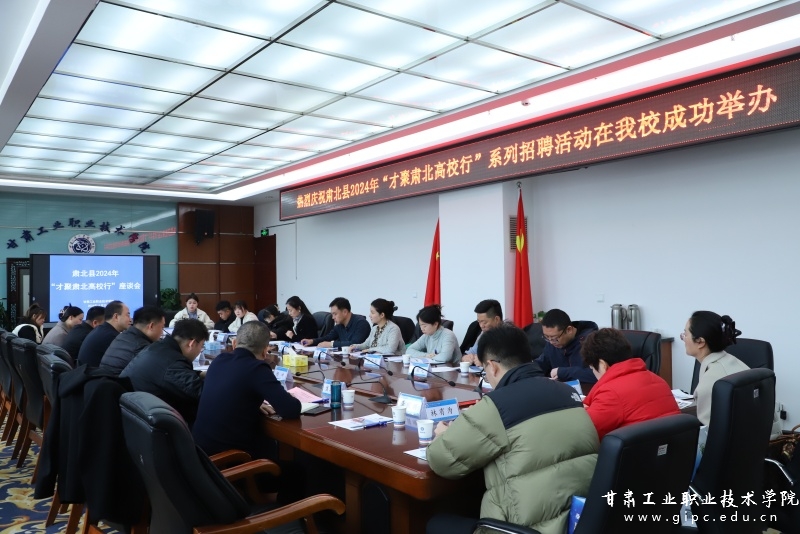 11月20日上午,肃北县人力资源和社会保障局党组成员、副局长、人才交流中心主任董元臻,甘肃省人力资源市场市场交流部副部长沙成玉一行22人来学校考察调研。学校在图书馆4楼召开座谈会,会议由副院长周晓明主持,招生就业处相关人员参加。