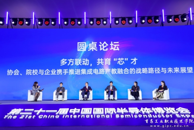 大会举办了圆桌论坛,我校电子信息学院负责人与来自重庆邮电大学、现代职业教育研究院、深圳技术大学、马来西亚先进半导体学院的代表及专家,围绕“多方联动,共育‘芯’才:协会、院校与企业携手推进集成电路产教融合的战略路径与未来展望”话题,展开了深入研讨,进行了圆桌论坛。我校作为唯一参加圆桌论坛的职业院校代表,电子信息学院负责人就我校产教融合共同体建设、校企联合培育集成电路封测行业技术技能人才、学生就业能力提升等方面的做法经验等进行了介绍,并与论坛嘉宾进行了交流。