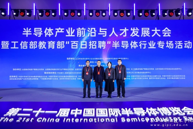 2024年11月19日—20日,由工业和信息化部中小企业发展促进中心、教育部学生服务与素质发展中心指导,中国半导体行业协会主办、全国集成电路封测行业产教融合共同体等协办的半导体产业前沿与人才发展大会暨工信部教育部“百日招聘”半导体行业专场活动在北京国家会议中心隆重举行。我校作为此次会议的协办单位,学校党委书记坚葆林带队、电子信息学院负责人等一行4人参会并参与主要活动。