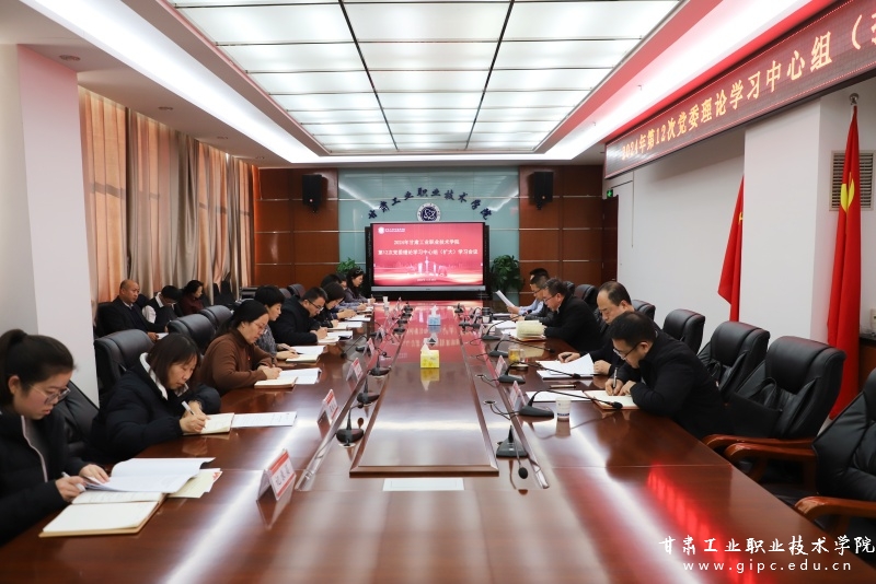 11月28日下午,学校在图书馆四楼会议室召开2024年第十二次党委理论学习中心组(扩大)学习会议。会议由党委副书记文云主持,其他在家党委班子成员出席会议,各二级学院党组织主要负责同志,各直属党支部书记,党委工作部门主要负责同志,马克思主义学院、工会、团委主要负责同志列席会议。