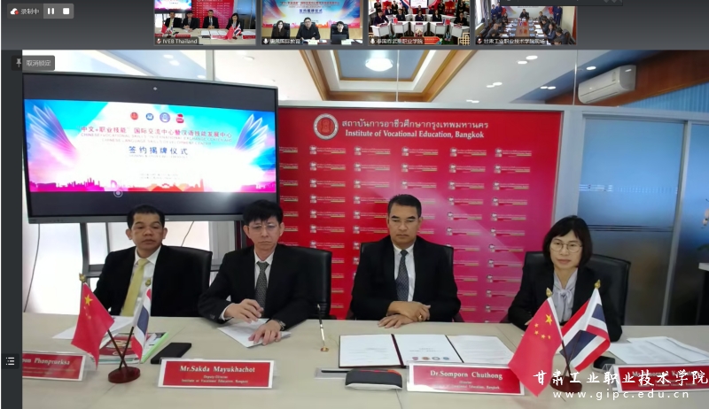 11月29日,甘肃工业职业技术学院与泰国曼谷职业教育中心、吞武里职业学院、北京唐风国际教育集团举行四方合作签约暨“中文+职业技能”国际交流中心、“汉语技能发展中心”揭牌仪式。