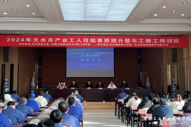 12月20日,我校工匠学院第一、第二期工匠培训——天水市产业工人技能素质提升暨车工、磨工培训开班仪式在天水风动机械有限公司举行。天水市总工会党组成员、工会经费审查委员会主任赵建业,天水市总工会经济工作部部长王锋,天水市风动机械有限公司副总经理、工会主席杨福财以及我校工会、继续教育学院负责人出席开班仪式。此次培训由天水市总工会和甘肃工业职业技术学院主办,天水海林技工学校、天水风动机械有限公司承办,旨在强化产业工人队伍建设,提升车工磨工专业技能,推动当地制造业高质量发展。