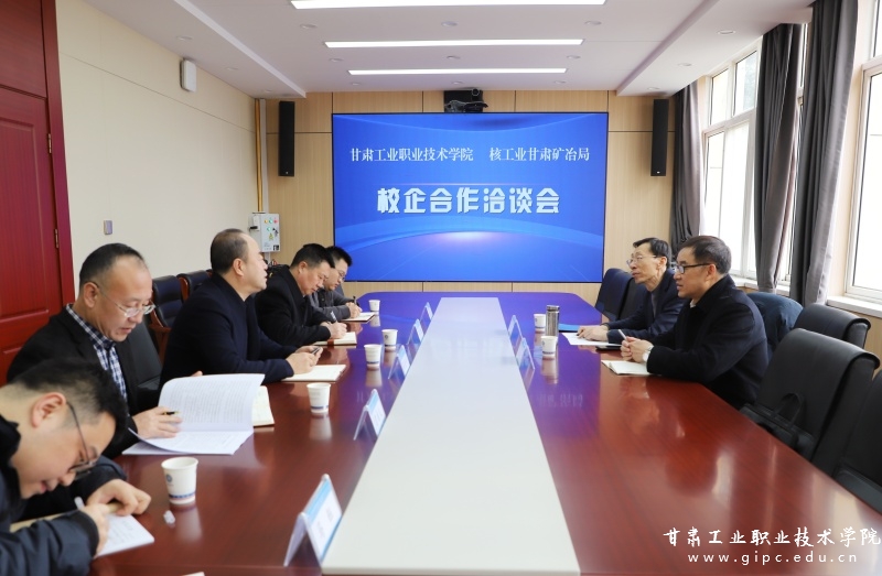 3月4日,核工业甘肃矿冶局副局长王树国、产业处处长李海辉一行莅临我校开展校企合作洽谈工作。洽谈会在行政楼二楼会议室召开,副院长周晓明、纪委书记贾昌麟出席,智能制造学院相关负责人参加会议。
