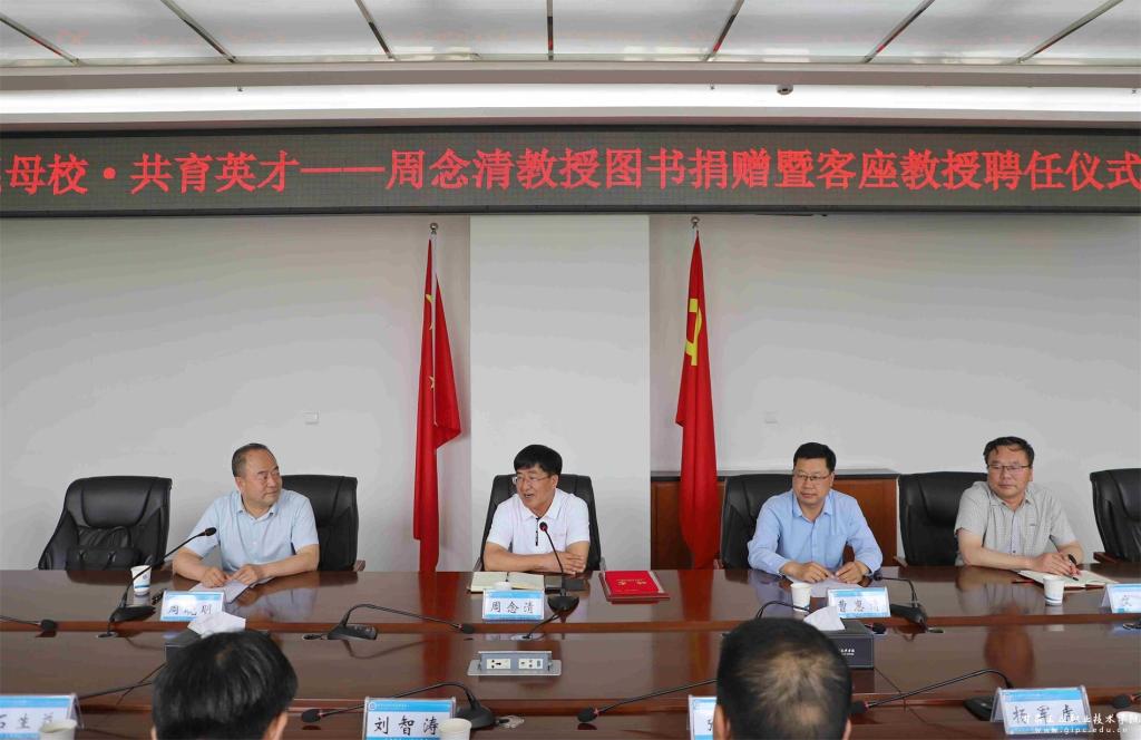 周念清发表了热情洋溢的讲话,表达了对母校的感谢与认可,并分享了自己对学术研究和教育事业的深刻见解。他表示,将充分发挥客座教授作用,积极参与学校相关活动,为师生提供指导与帮助,助力学校的发展。