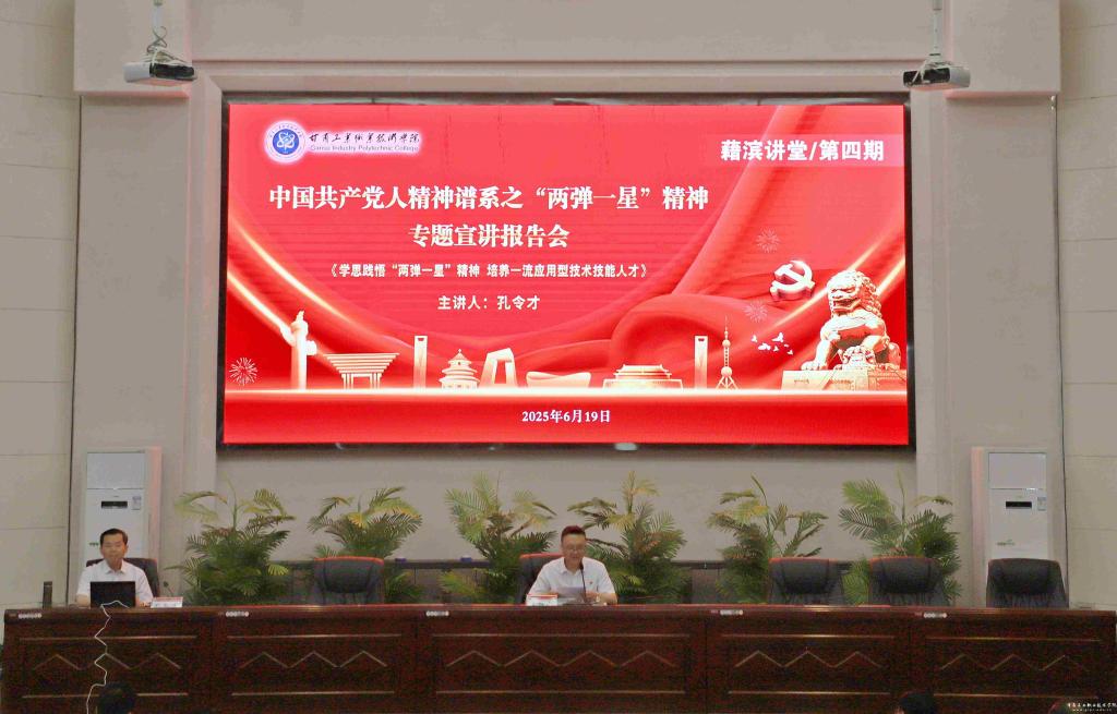 2025年正值中国核工业创建70周年,甘肃工业职业技术学院作为核工业人才培养的摇篮,始终秉承“服务国家战略,培育工匠人才”的办学理念。报告会上,孔令才政委以《学思践悟“两弹一星”精神 培养一流应用型技术技能人才》为主题,以深厚的理论功底和生动的历史细节,全面阐释了“两弹一星”精神的深刻内涵与时代价值。他结合自身近50年的军旅生涯,讲述了老一辈科学家隐姓埋名、扎根戈壁的感人事迹,生动展现了“热爱祖国、无私奉献,自力更生、艰苦奋斗,大力协同、勇于登攀”的“两弹一星”精神,同时强调了“两弹一星”精神对当代青年的重要意义。