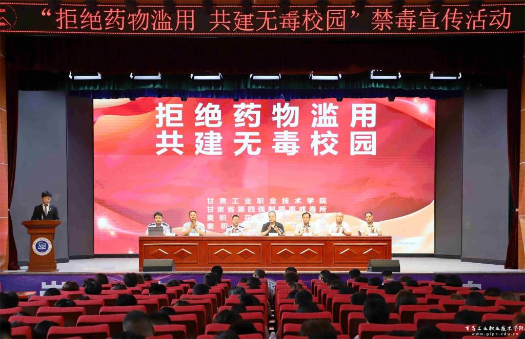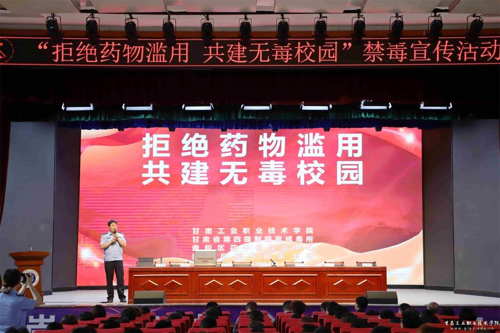 为深入贯彻落实国家“全民禁毒宣传月”工作部署,提高我校大学生识毒、防毒、拒毒意识,营造健康无毒的校园环境,6月23日,学校联合甘肃省第四强制隔离戒毒所共同开展了“拒绝药物滥用 共建无毒校园”禁毒宣传进校园活动。甘肃省第四强制隔离戒毒所党委委员、副所长李伟国,教育纠治大队副大队长李嘉玮一行五人,花牛镇司法所所长张正华,花牛镇综治中心专干崔江涛等干警,我校党委委员、副院长周晓明出席活动,学工处、保卫处、校团委等部门负责人及600余名师生参与。