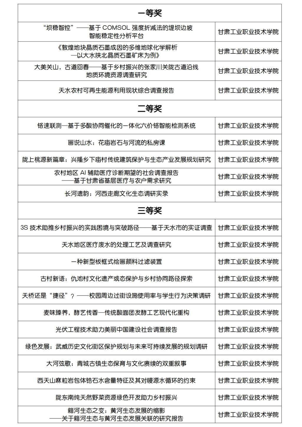 6月17日至20日,第十五届“挑战杯”甘肃省大学生课外学术科技作品竞赛决赛在兰州石化职业技术大学圆满落幕。我校共斩获一等奖4项,二等奖5项,三等奖12项,创下学校在该项赛事中的历史最好成绩。